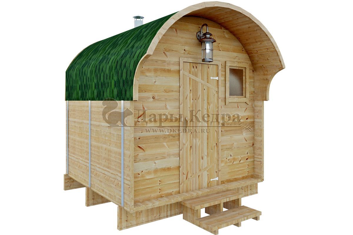 Баня-бочка представляет собой конструкцию в виде бочонка без углов. Такая форма считается оптимальной для равномерного распределения пара по всей внутренней поверхности парной. Таким образом, пар не скапливается в одном месте, а циркулирует по всему объему. Соответственно, круглая (квадратная, овальная) баня экономичная: топится быстро, требует дров мало.
