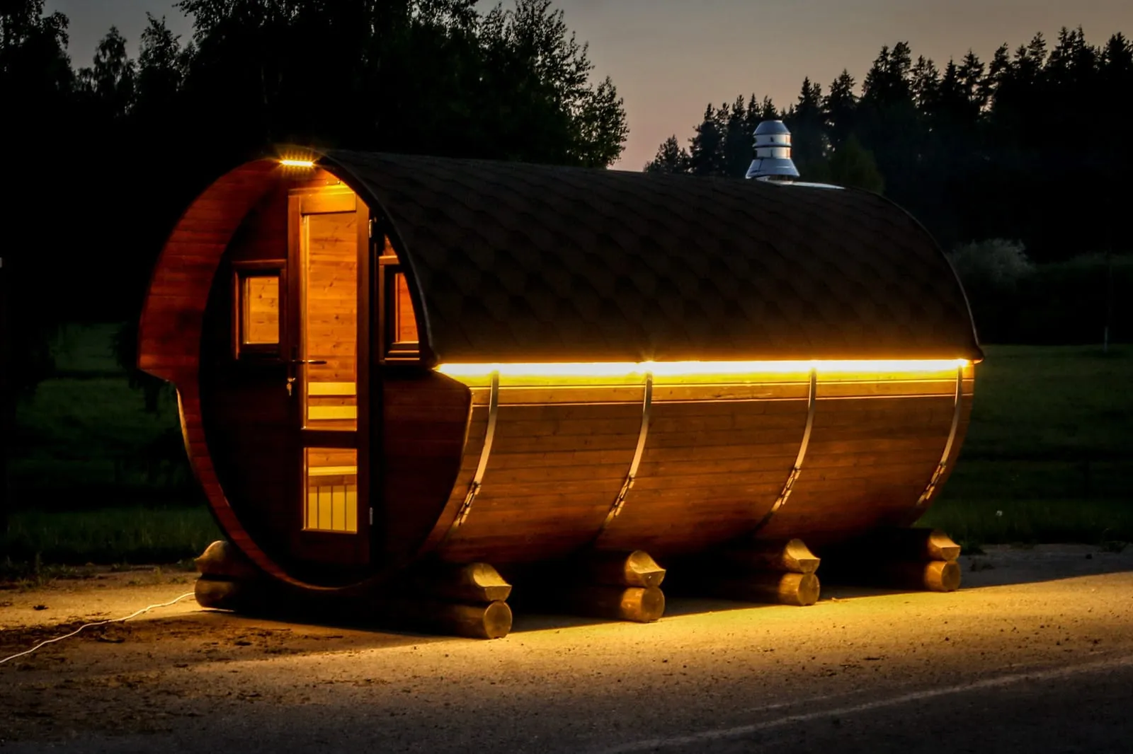 Мобильная баня-бочка с каждым днем набирает все большую популярность благодаря её возможной транспортировки куда угодно: на отдых в лесу, на рыбалку или на побережье реки