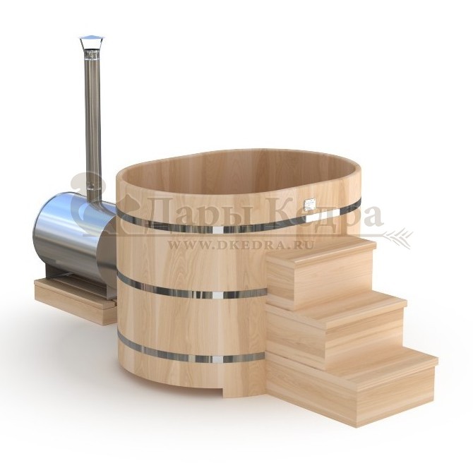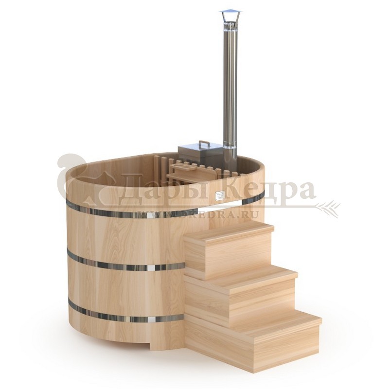 Фурако овальная из кедра со встроенной печью Это уличная баня, которой можно пользоваться круглый год. Купель представляет собой овальную емкость для воды, внутри которой располагаются сиденья из кедра. Нагрев воды происходит за счет встроенной печи, которая находится внутри купели за перегородкой. Рекомендуем приобрести термокрышку и весло для перемешивания воды для ускорения нагрева. Для удобства пользования японская баня фурако оборудована внешней и внутренней лестницей из кедра. В комплектацию этой модели входит совок с длинной ручкой, который позволяет извлекать угли и золу после эксплуатации изделия. Целебная древесина кедра богата фитонцидами и эфирными маслами, которые активируются при нагревании. Таким образом, во время процедур парения организм насыщается полезными веществами. , ,