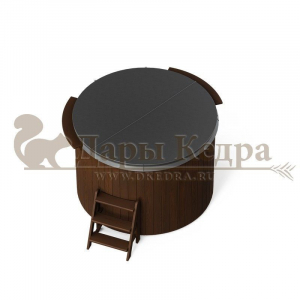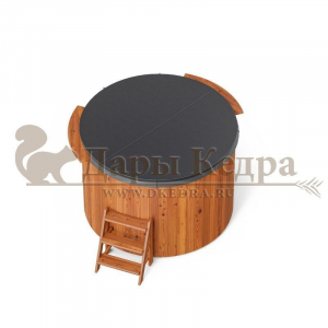 Это купель с круглой внутренней чашей, которая изготовлена из современного прочного и термоустойчивого материала (композита). Форма чаши обеспечивает комфортную посадку внутри изделия. Для удобного использования купель оснащена приставной лестницей. Обручи из нержавеющей стали декорируют купель с композитом и равномерно распределяют нагрузку во время процедур.