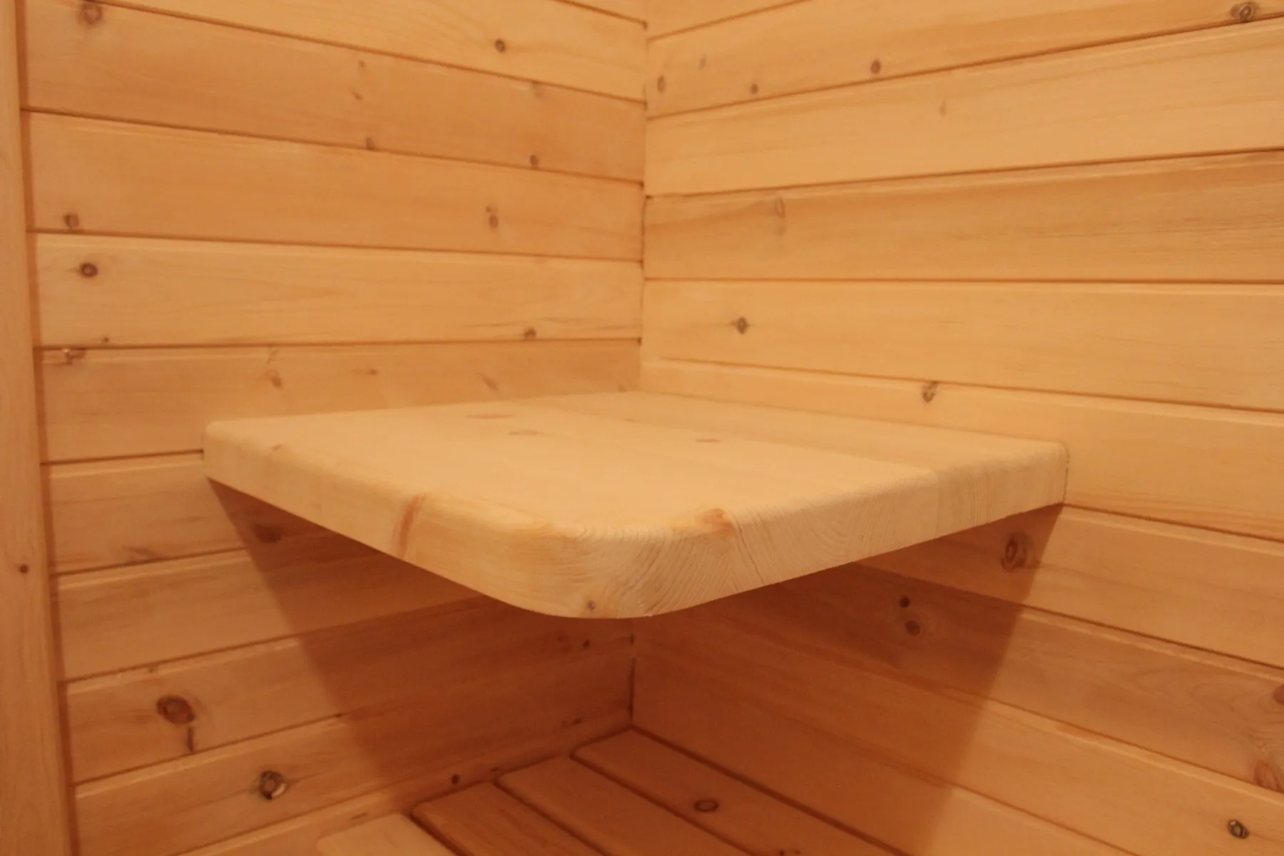 Столик в раздевалке будет удобен при длительном пребывании в бане.