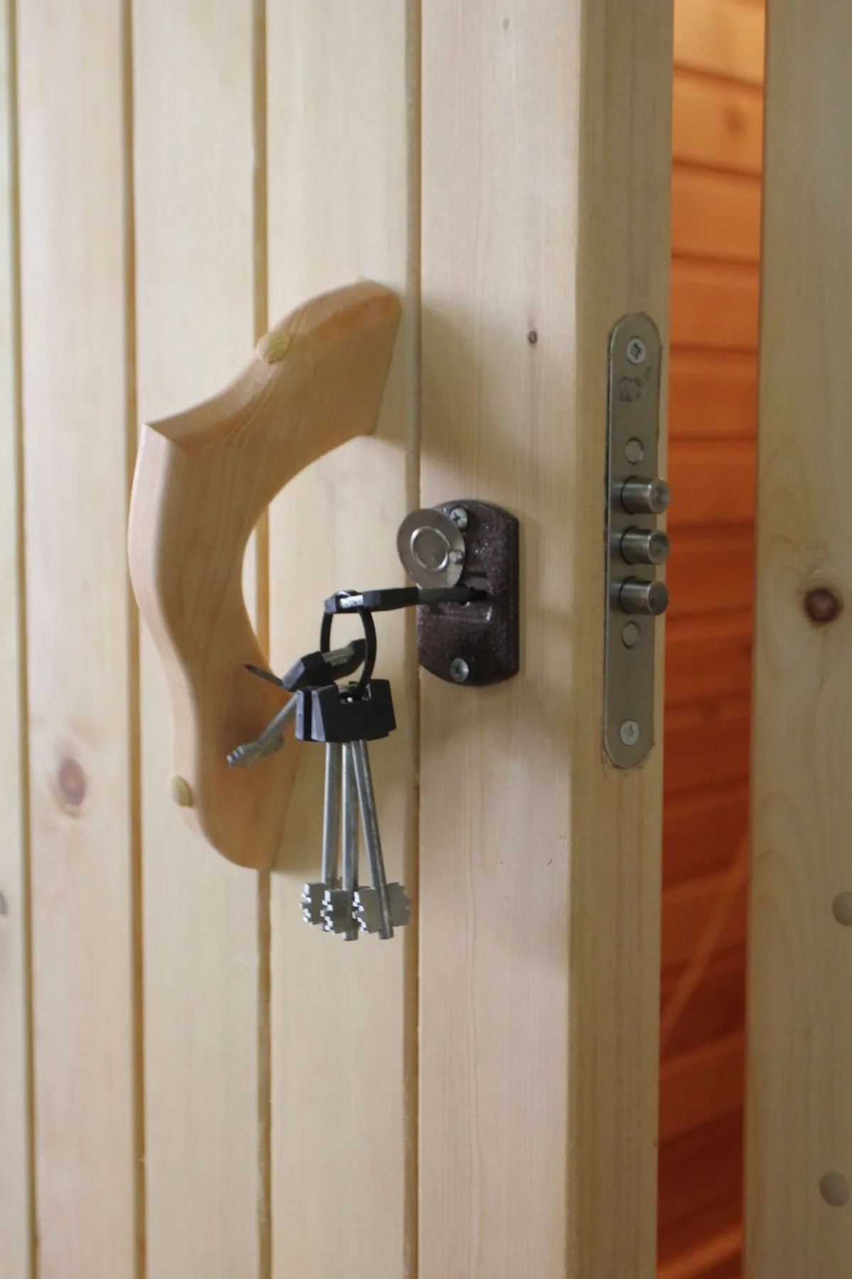 Врезной замок поможет защитить внутреннее пространство бани в ваше отсутствие.