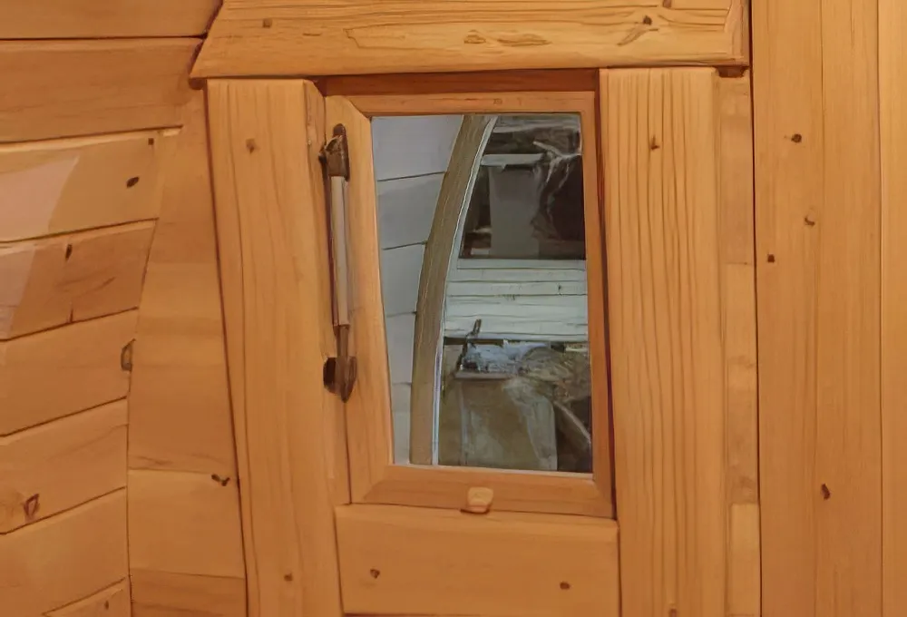 Зеркало в раме из кедра будет отлично гармонировать со всем остальным интерьером бани.