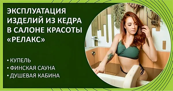 Финская сауна, купель и душевая кабина из кедра в центре здоровья и красоты "Релакс" (г. Новосибирск)