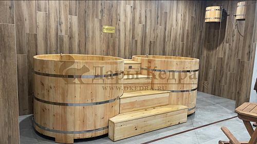 Покупали двойную купель для банного комплекса, т.к. рассчитывали на большой поток клиентов. Смотрится стильно. Клиенты довольны, даже в очередь становятся! Поэтому в качестве продукции убедились. Спасибо Дарам Кедра! Рекомендуем!
